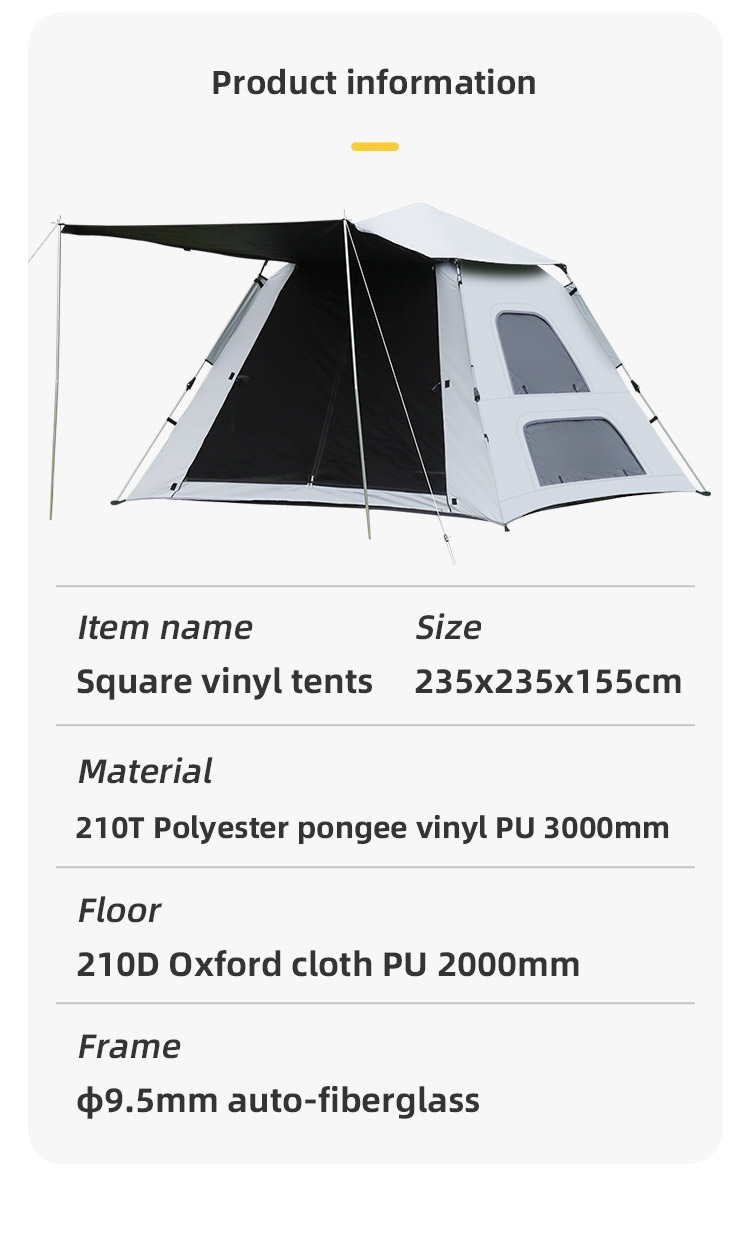 Outdoor Square Automatic Camping Family Tent with Sunshelter