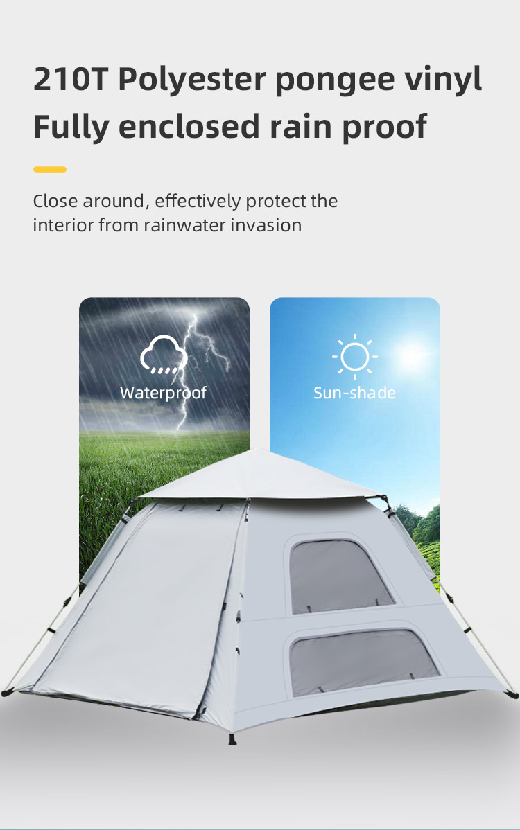 - Waterproof Design: Crafted from premium polyester with a waterproof coating, this tent is designed to withstand rain and prevent splashing, ensuring you stay dry and worry-free. The fabric is not only waterproof but also breathable for added comfort during your outdoor adventures.