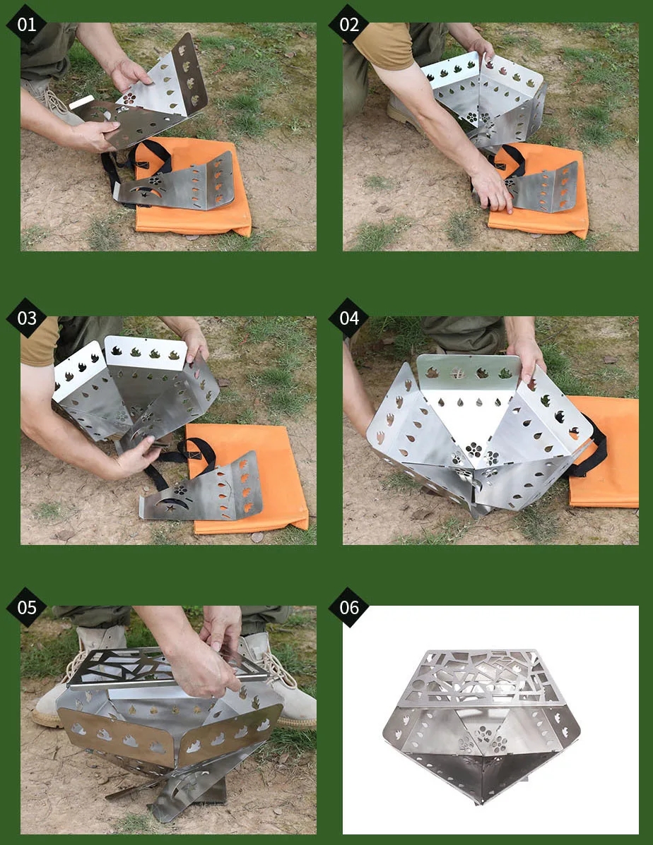 - MULTI-USE COLLAPSIBLE GRILL: This versatile camping grill serves as both a campfire grill gate and a camping fire pit. Whether you’re into open-fire cooking or embarking on an outdoor adventure, it’s a perfect fit. A valuable addition to your hiking accessories, camping cookware, bushcraft gear, or emergency survival kits.