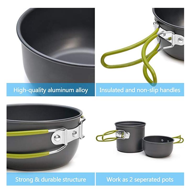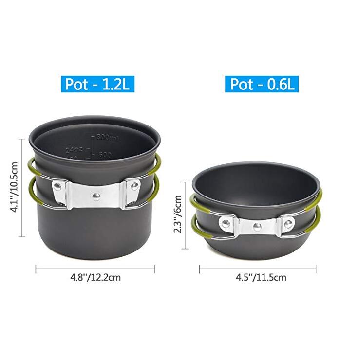 - Sturdy and Easy to Clean: Made from high-quality aluminum, this cookware set is strong, durable, and simple to clean. It’s built to withstand the demands of outdoor use, ensuring long-lasting performance.