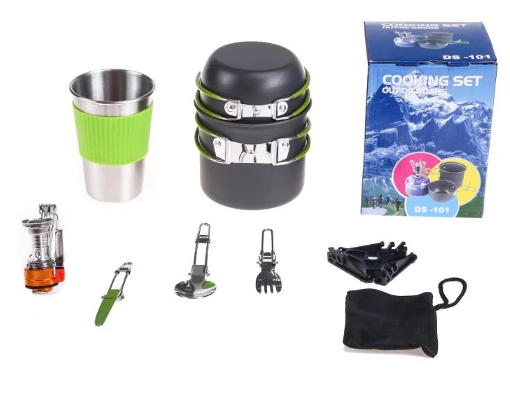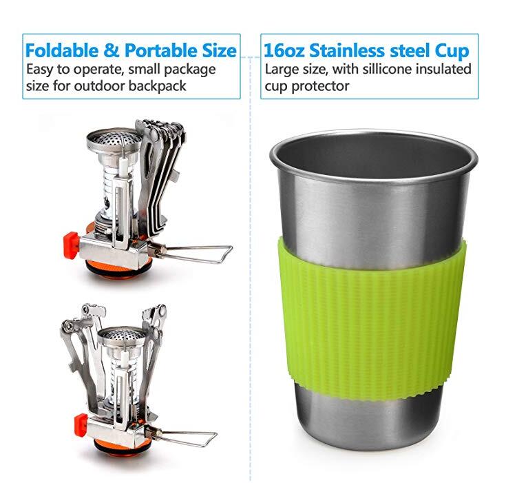 7pcs Portable Camping Cookware Sets with portable Stove and drinkware for outdoor Backpacking