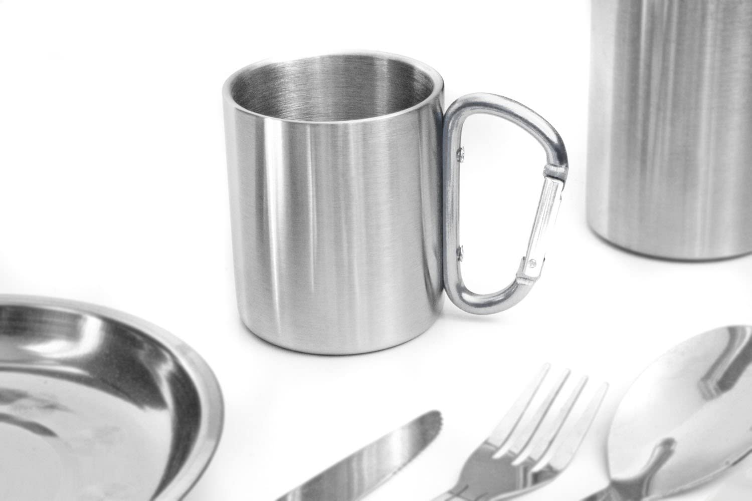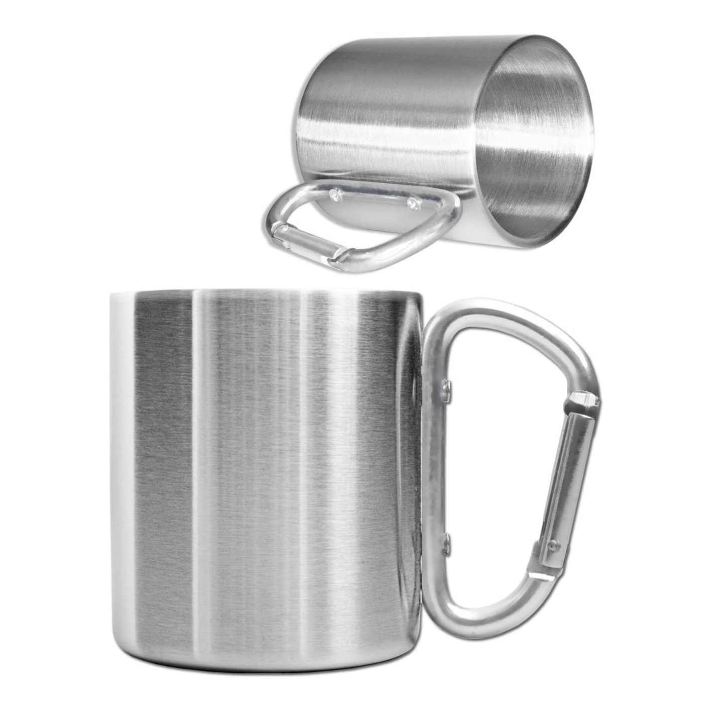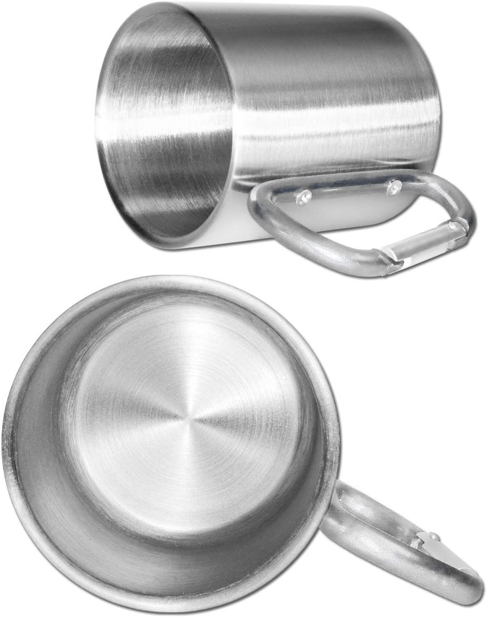 - Double Wall Heavy Duty Stainless Steel Camping Mug / Outdoor Mug featuring a Screwed Carabiner Handle for Hiking, Travel, Climbing, Mountaineering, Trekking, and Work