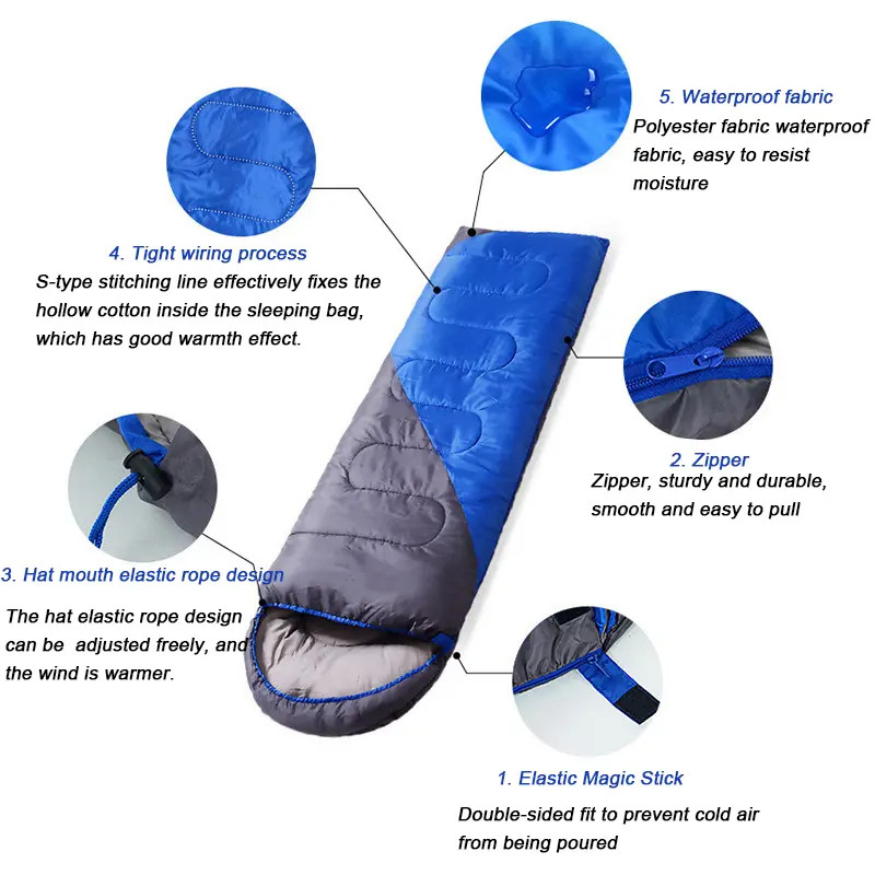 Envelope Hollow Cotton Camping Sleeping Bag for Outdoor Activity
