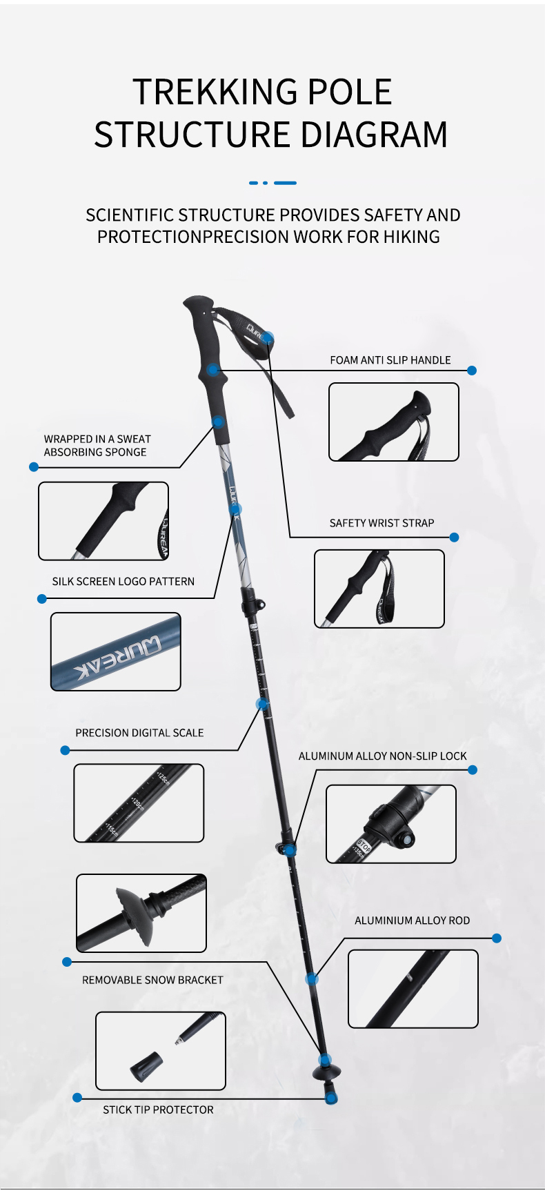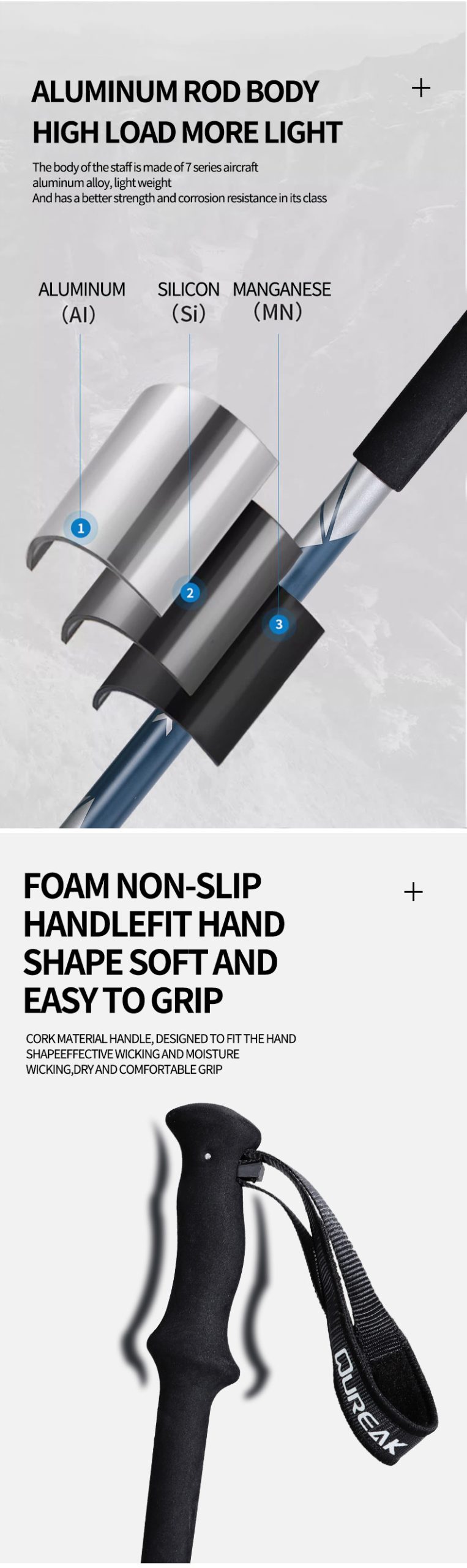 Outdoor Foldable Ultralight Mountain Telescopic Carbon Fiber Aluminium Hiking Trekking Pole