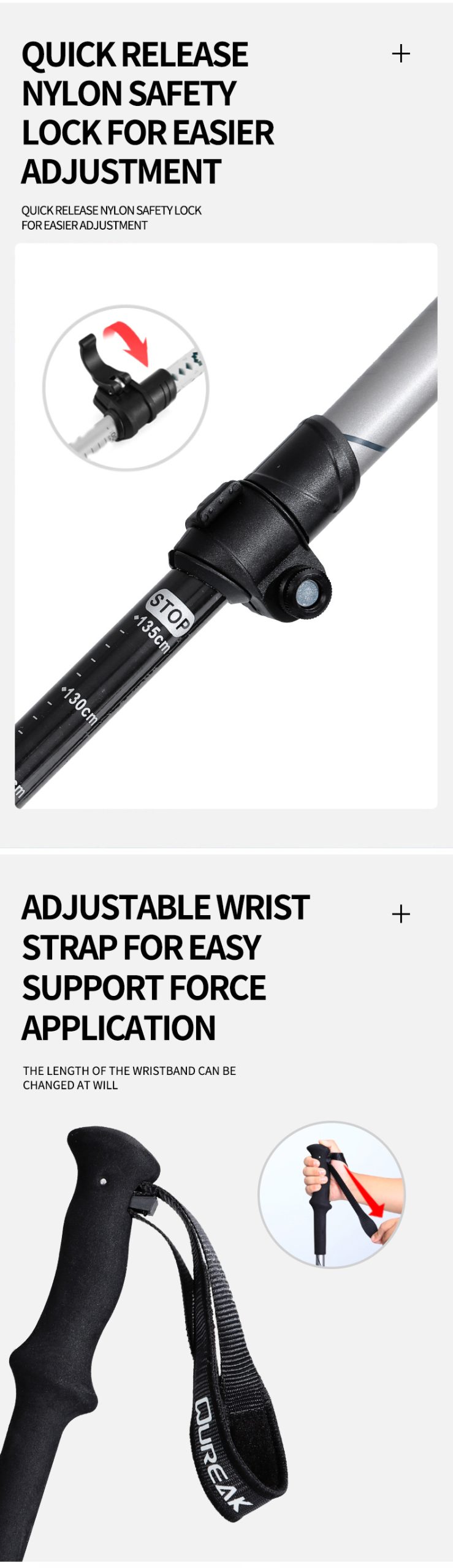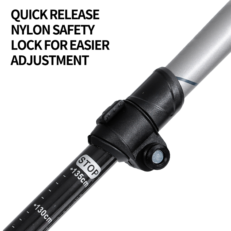 • Height Adjustable (65-135 cm): Tailor the pole height to your preference, with an adjustable range from 65 to 135 cm, accommodating various users and terrains.