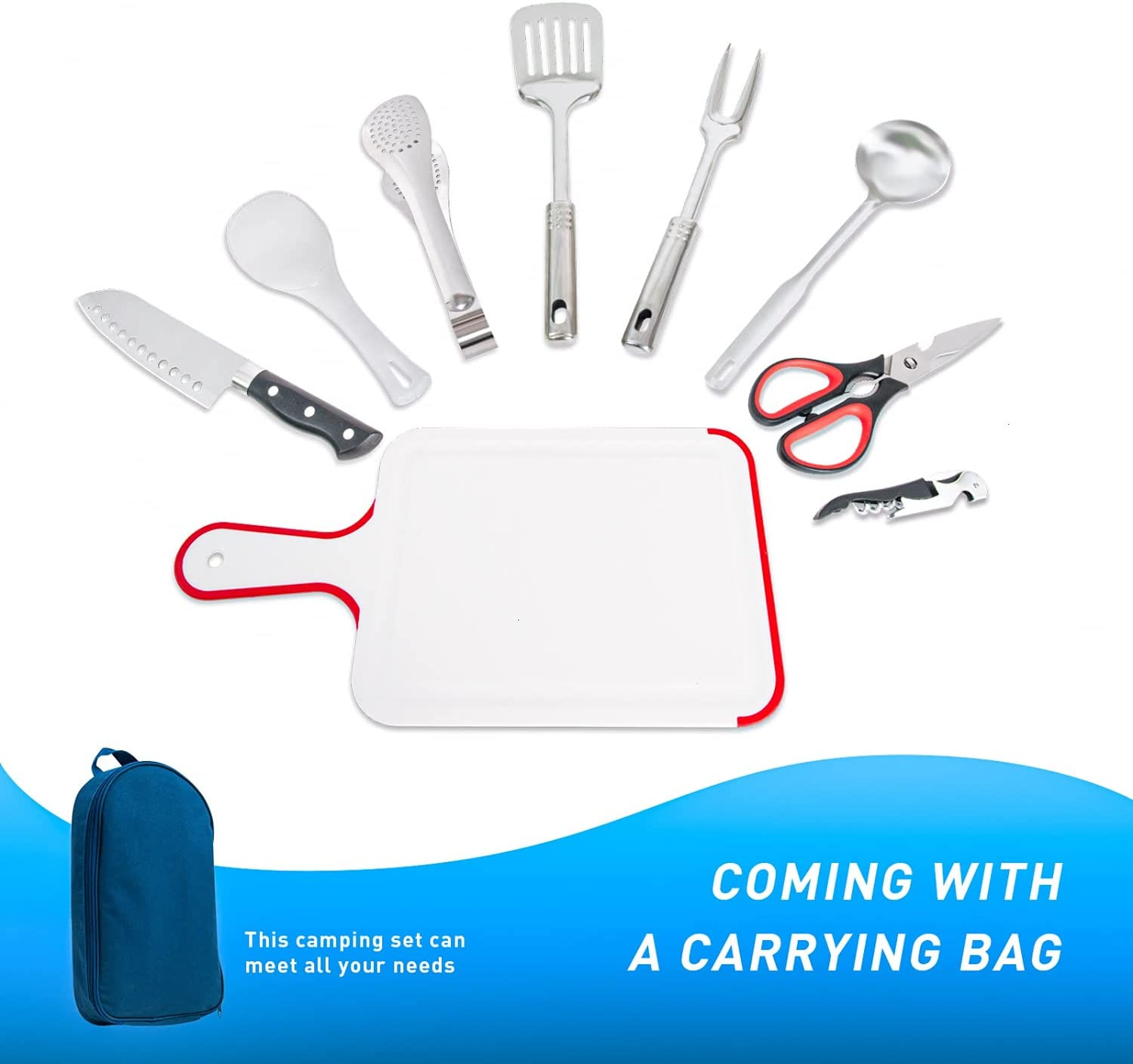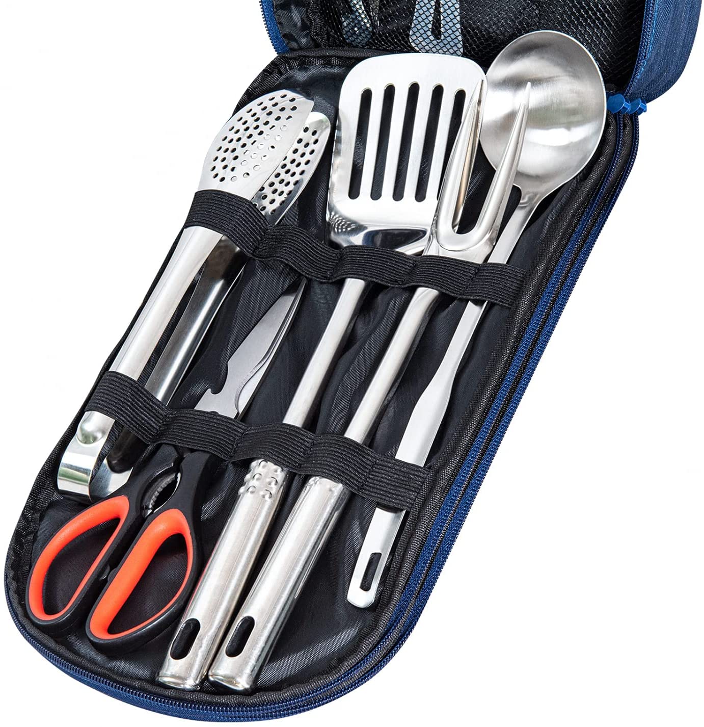 - SUPERIOR DURABILITY – Crafted from robust materials such as strong plastic, stainless steel, or sturdy nylon, these kitchen utensils are built to last. The camp tool set comes with a water-resistant case, absorbing impact from falls and safeguarding your cooking accessories.