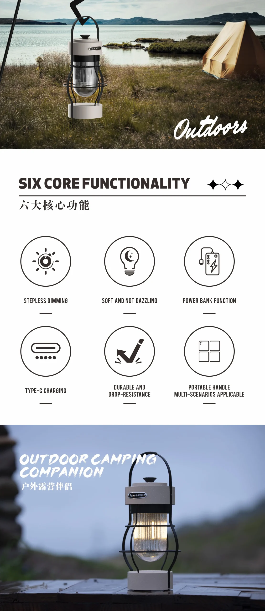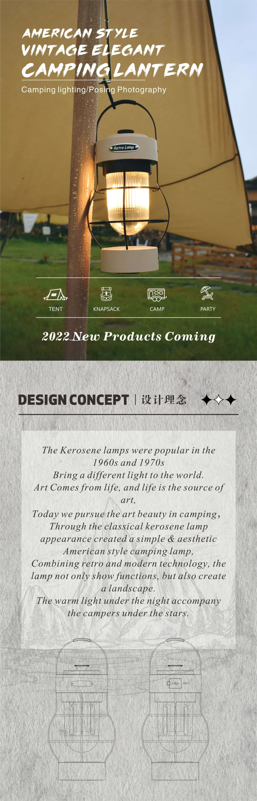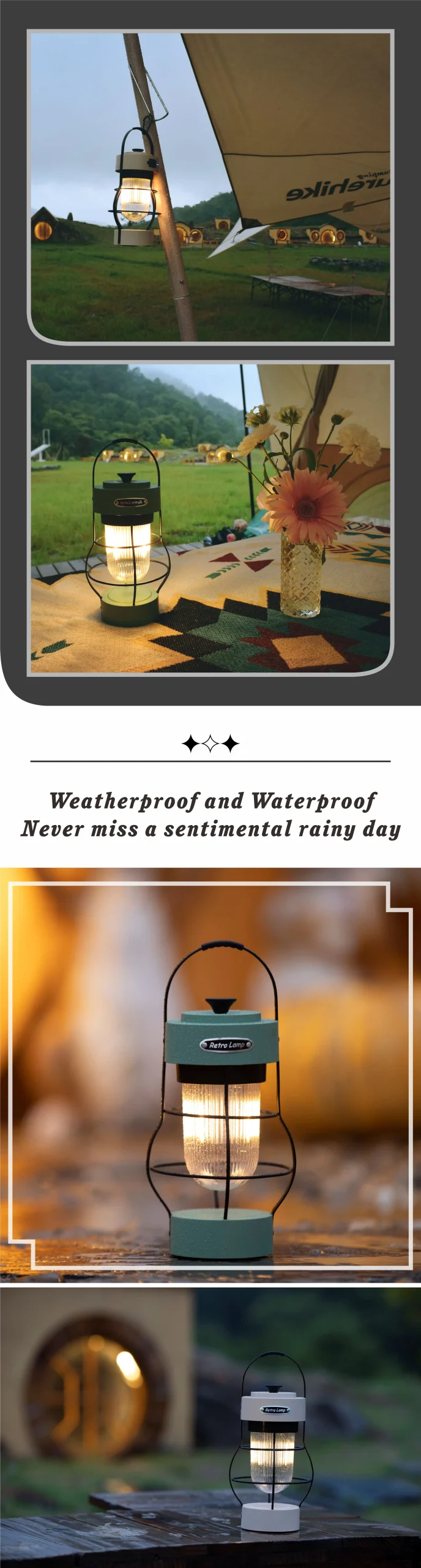 1. Elevated Outdoor Nights with American Vintage Vibes: Experience the enchantment of cool American vintage vibes with this tent camping light that adds a touch of nostalgia to your outdoor adventures. Emitting warm lighting, it enhances the beauty of the night, creating the perfect ambiance for guests camping under the stars.