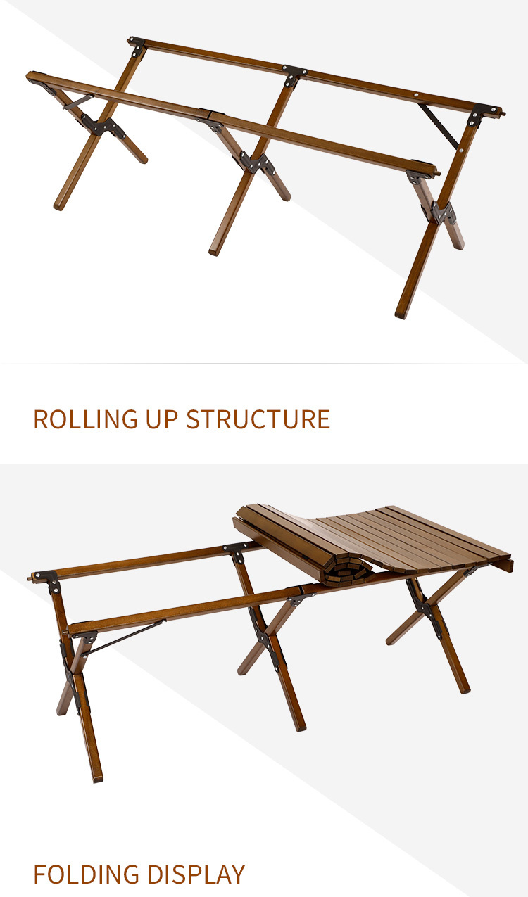 - Portable Folding Design: This wooden folding table features a top that can be easily rolled up and folded, offering strength and effortless assembly. Weighing approximately 16.5 pounds, this portable floor picnic table comes with an Oxford cloth storage bag, allowing for convenient transportation and storage in almost any location.