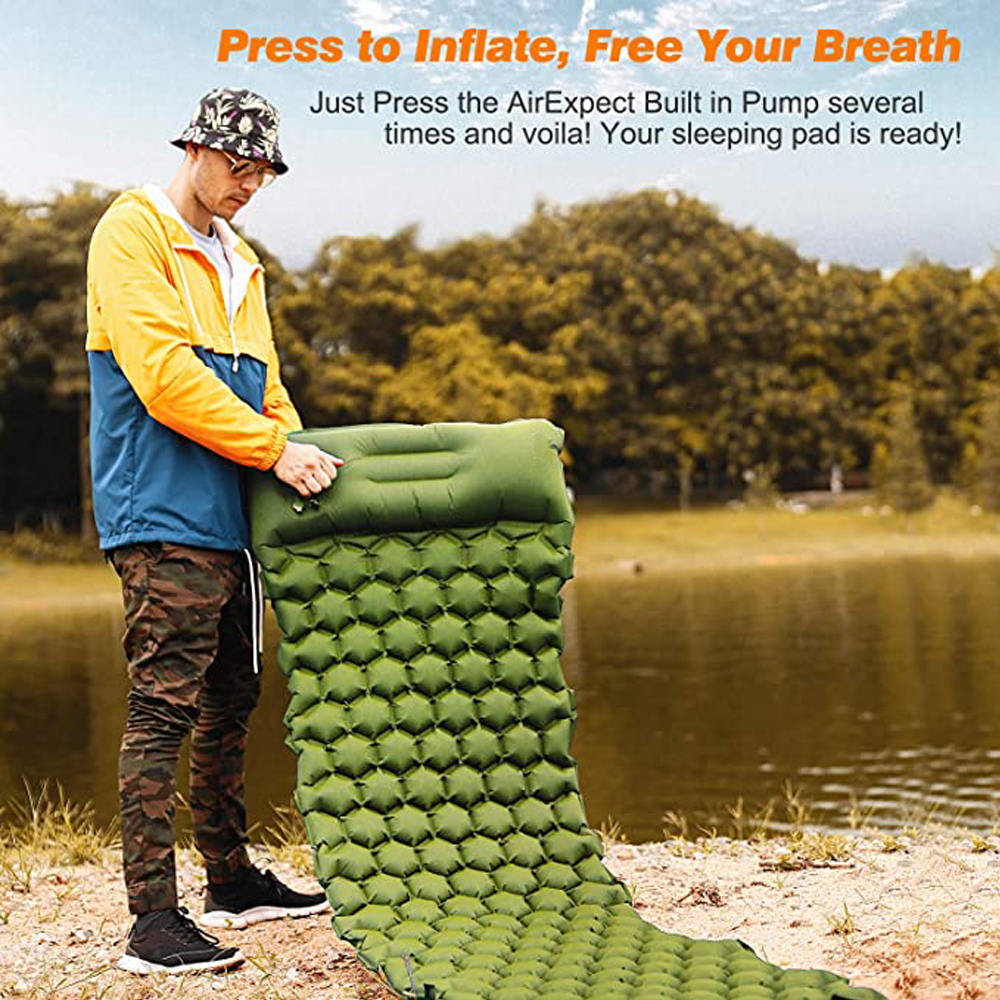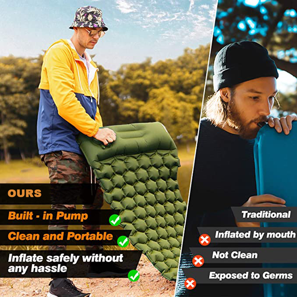 - Innovative Built-In Air Pump: Say goodbye to manual inflation. With our innovative built-in air pump, simply stamp your foot or press with your hand to fully inflate the camping mat in 1-2 minutes. This hassle-free method is much more convenient than traditional breath or pump inflation.