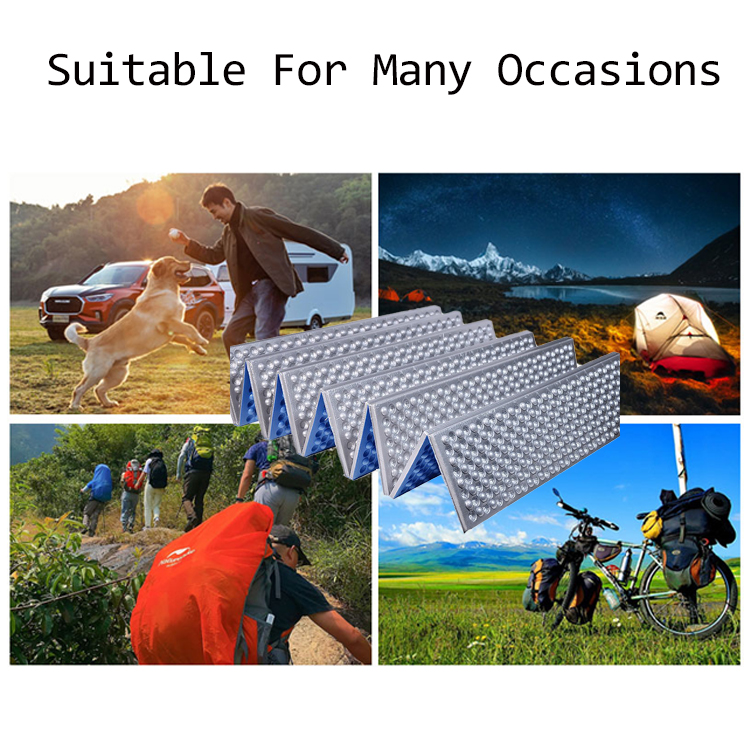 - Scope of Application: This versatile Outdoor Folding Mat can be conveniently folded into a compact package, making it suitable for a wide range of outdoor activities. Whether you are camping, hiking, backpacking, climbing, having a picnic, or exploring different terrains like mountains, plains, snowy landscapes, or grasslands, it effortlessly adapts to various environments.
