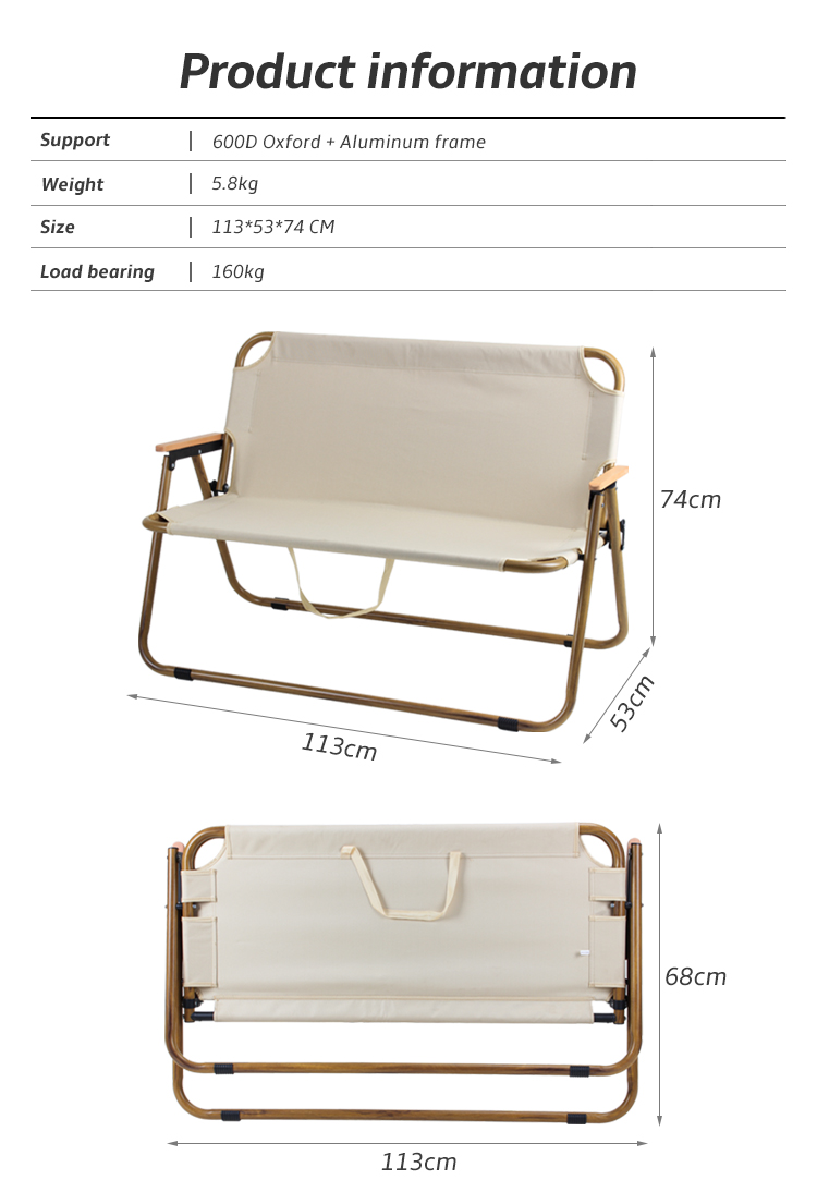Experience ultimate comfort with our lawn bench featuring an extended seat height of 38cm above the ground, perfect for beach outings, surfing, and lounging on the grass. With a generous length of 113cm, this double-wide chair accommodates two people, providing an ideal space for you, your friends, or family to relax.