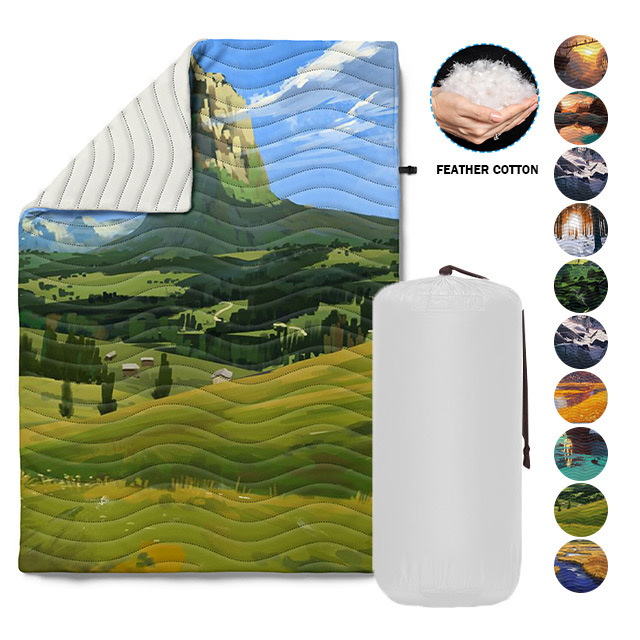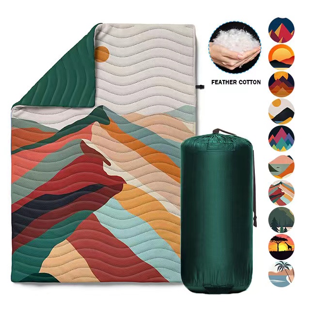 Outdoor Custom Printed Wholesale Lightweight Waterproof Down Puffy Camping Blanket