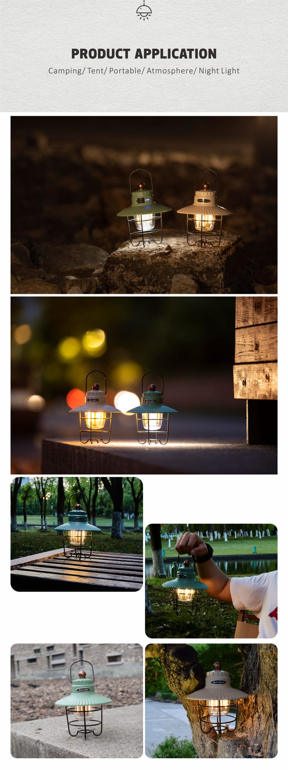 Retro Elegance: With its vintage style and traditional barn lantern-like shape, this camping light adds a touch of retro elegance to your camping trips, outdoor dining experiences, or peaceful evening strolls.