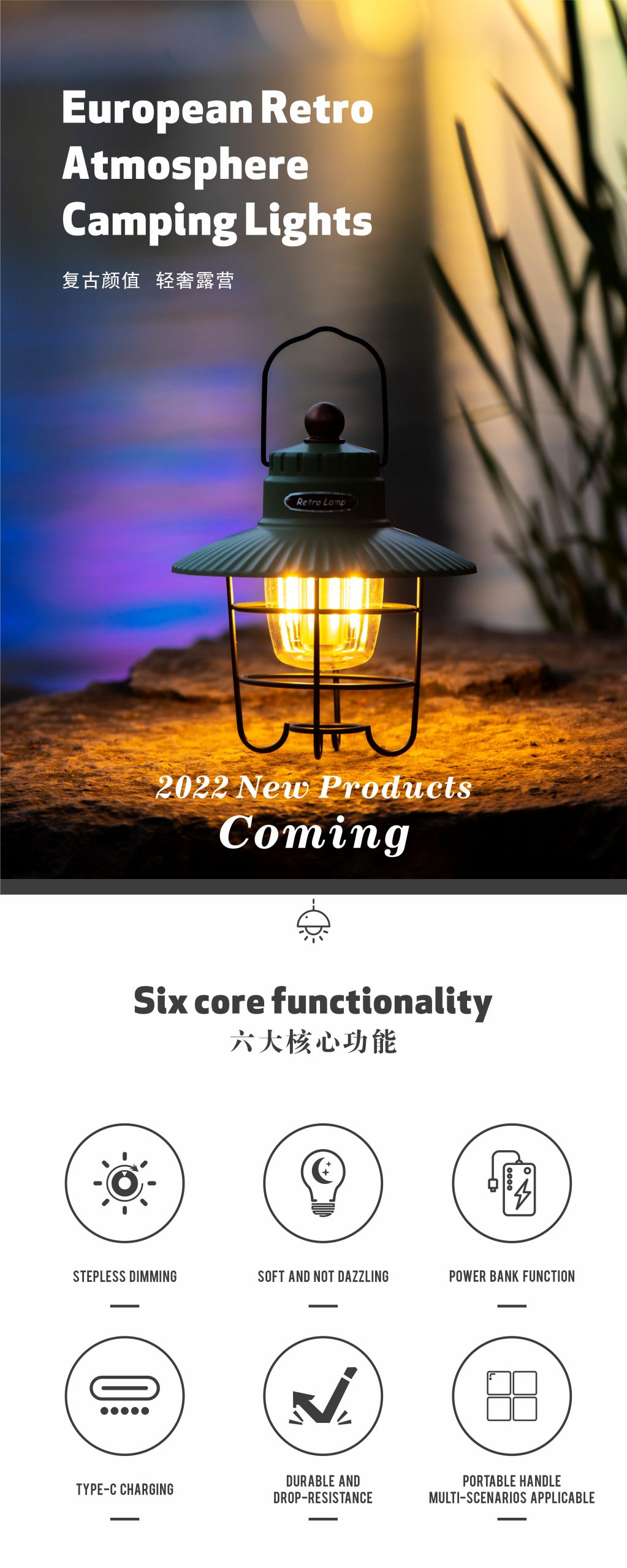Outdoor Portable Retro Camping Tent Light – Rechargeable Camping White Lamp