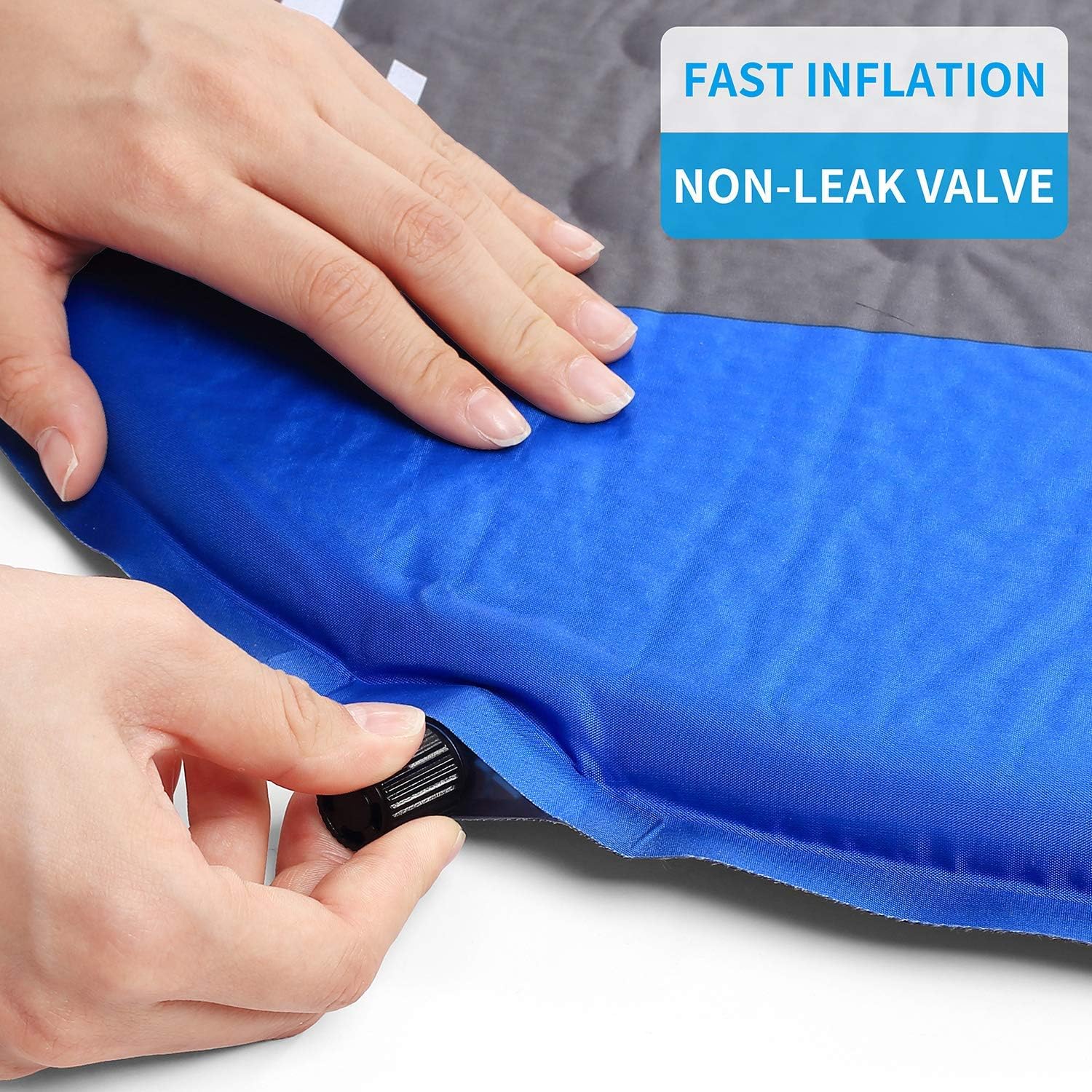 - 【Self-Inflating Sleeping Pad for Camping】 — DUFFIN’s sleeping pad offers optimal comfort and warmth, ensuring you get a restful night’s sleep during your camping adventures. Say goodbye to back pain and discomfort caused by rocky terrain, as the foam mattress provides excellent support. An essential companion for camping and hiking.