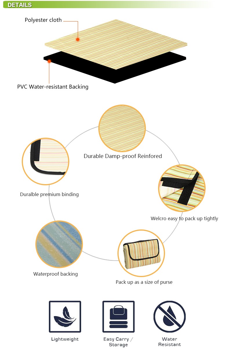 Outdoor Camping Light-weight Foldable PVC backing Waterproof Picnic Mat
